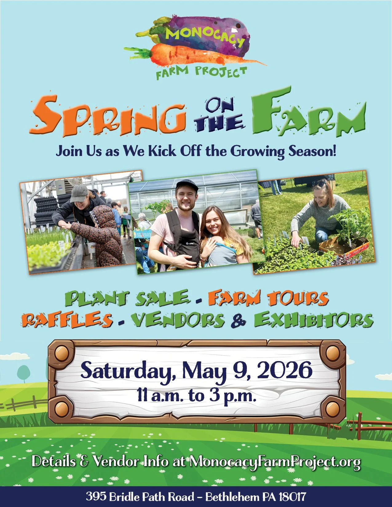 Monocacy Farm Project’s sixth annual Spring on the Farm event is set for 11 a.m. to 3 p.m. on Saturday, May 9. The day will include a sale of a wide variety of plants direct from our greenhouse (sure to sell out), local food and craft vendors, farm tours, and exhibitors. All proceeds from this family-friendly event benefit Monocacy Farm Project.